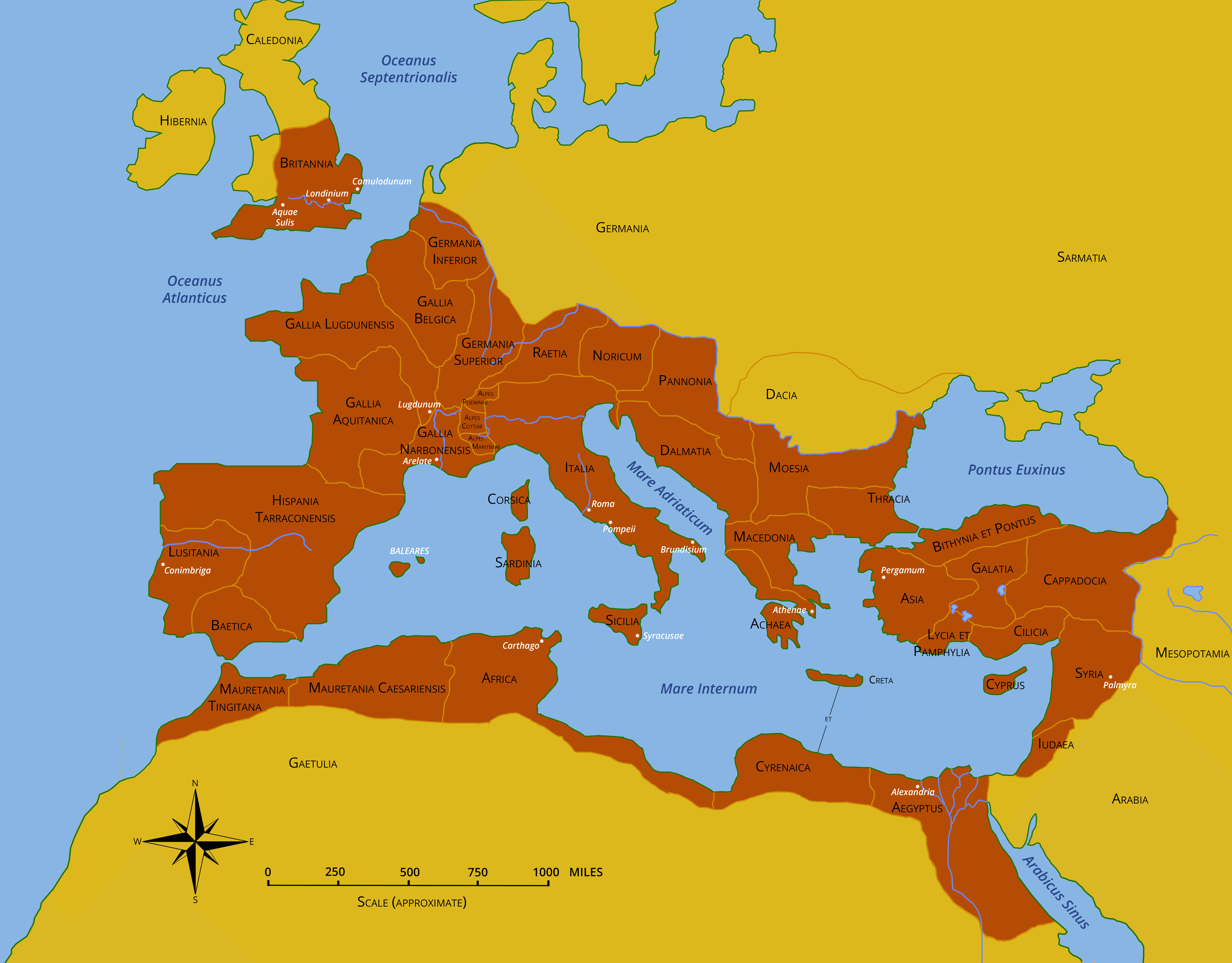 A Roman road (the Via Appia) lined with tombs, as it is now. Roman tombs were placed beside the roads outside the city boundary to separate the dead from the living.