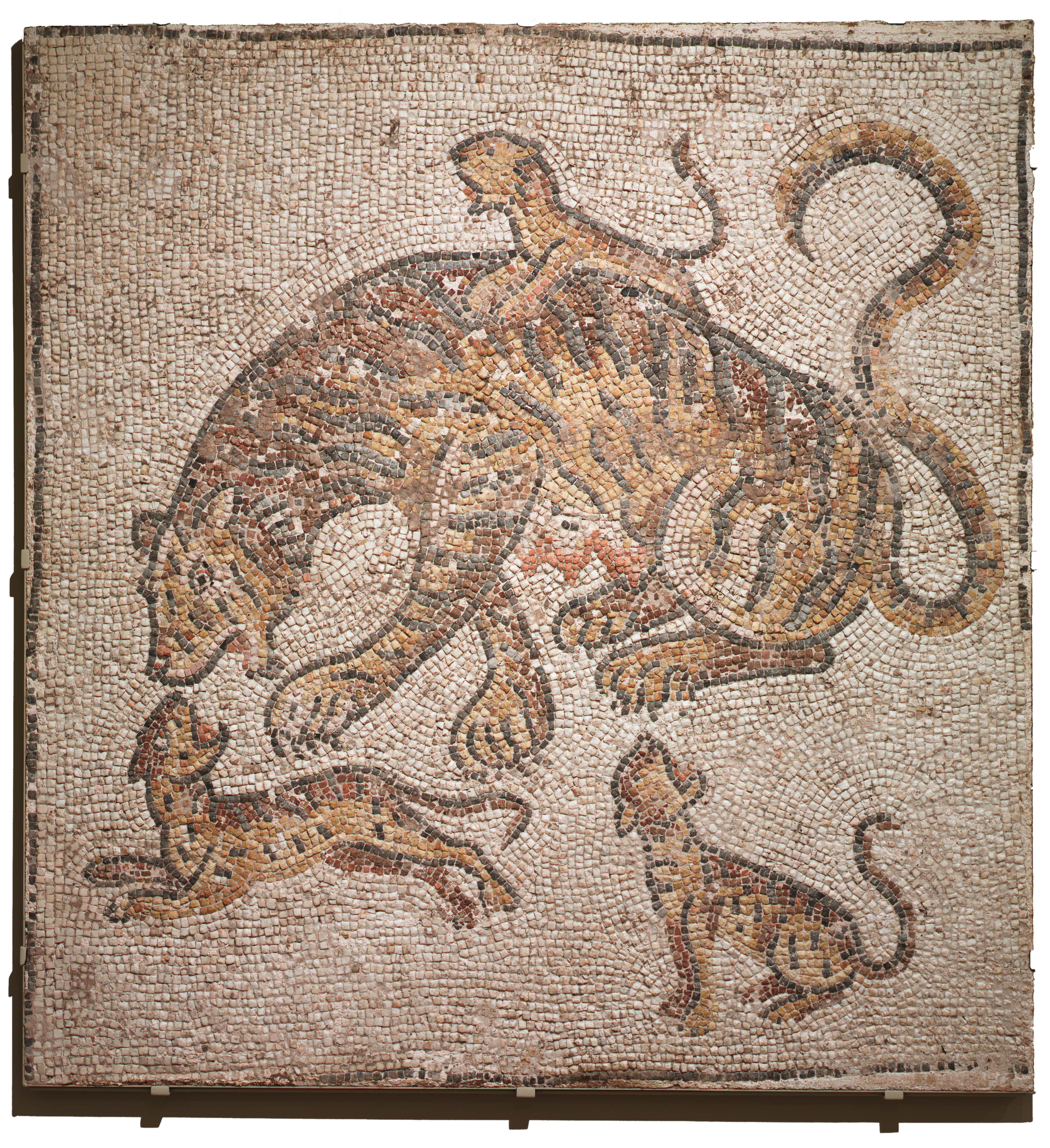 This mosaic of a tigress and her cubs is from the third century ad. Tigers were imported from west and central Asia to Rome to appear in gladiatorial shows.