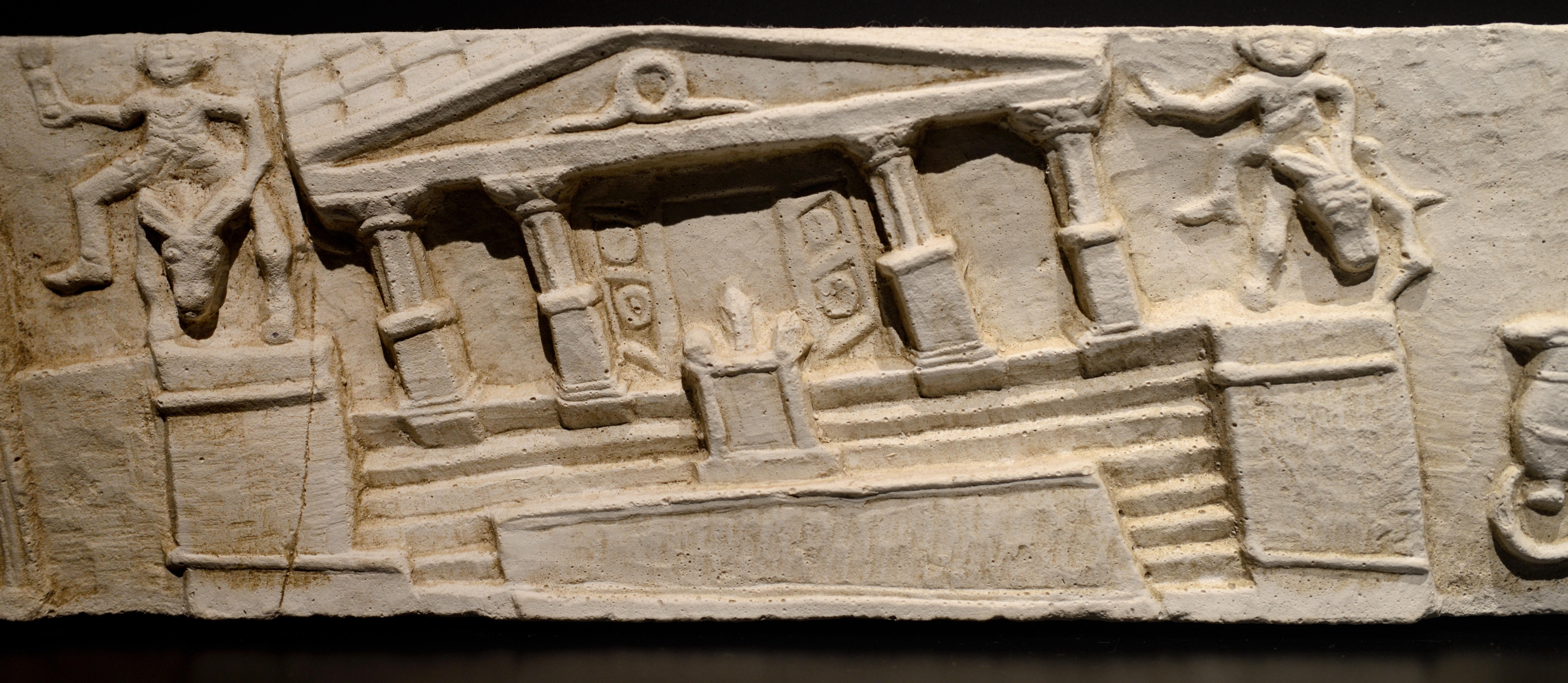 This relief from the house of Caecilius Iucundus in Pompeii shows a scene from the ad 62 earthquake. The building is thought to be the Temple of Jupiter in the Forum of Pompeii.