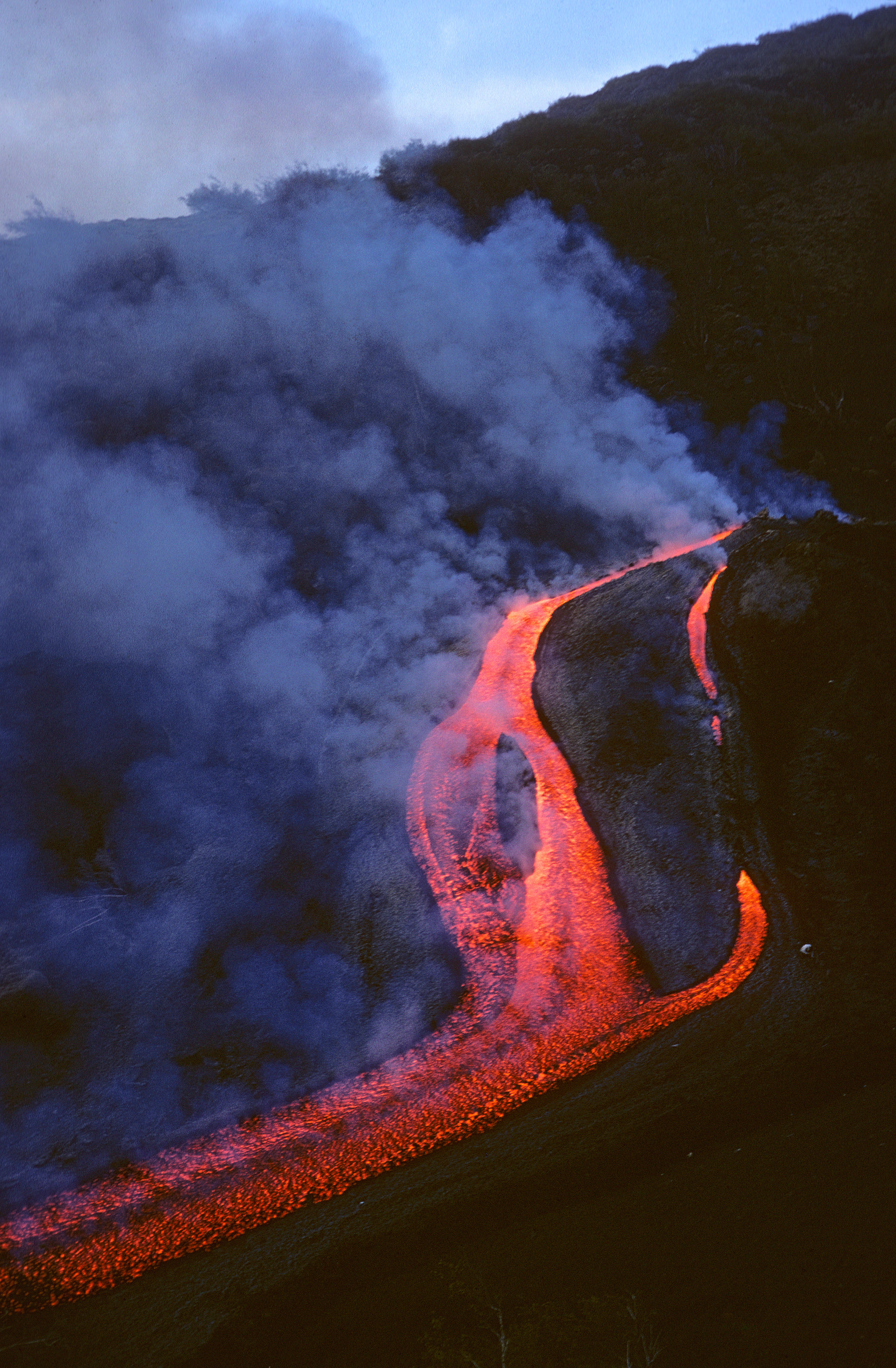Lava pouring from Mount Etna in Sicily. It is one of the world’s most active volcanoes.