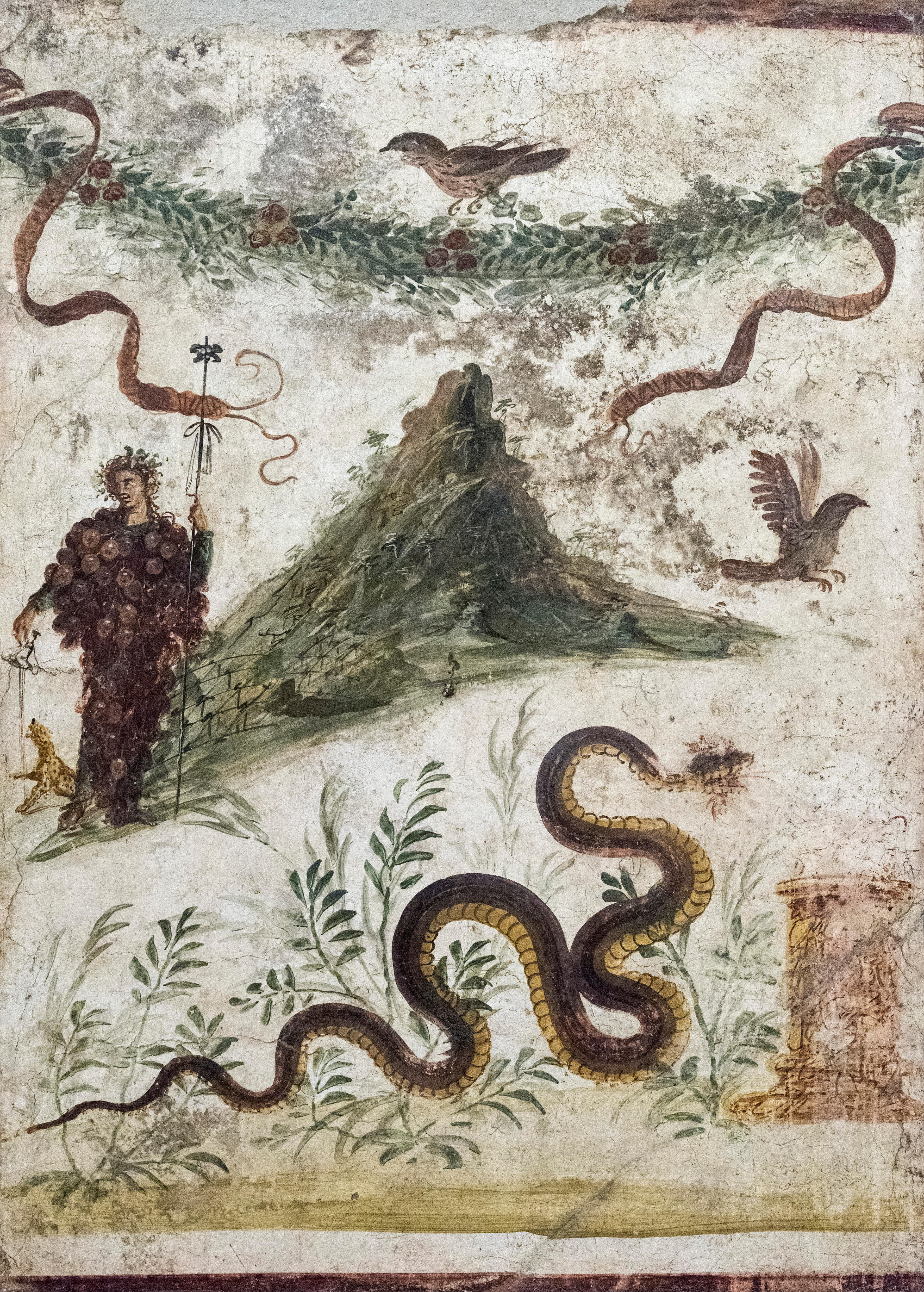 This wall painting from Pompeii shows Bacchus, the god of wine, wearing a bunch of grapes. Behind him stands Mount Vesuvius, its slopes covered in vineyards. Before its eruption in ad 79, Mount Vesuvius had long been cultivated for the production of grapes and other crops. In fact, the volcanic ash that had spread across the land in previous eruptions was high in nutrients that made the soil fertile. These included zinc, chlorine, iron, cobalt, nitrogen, and boron.