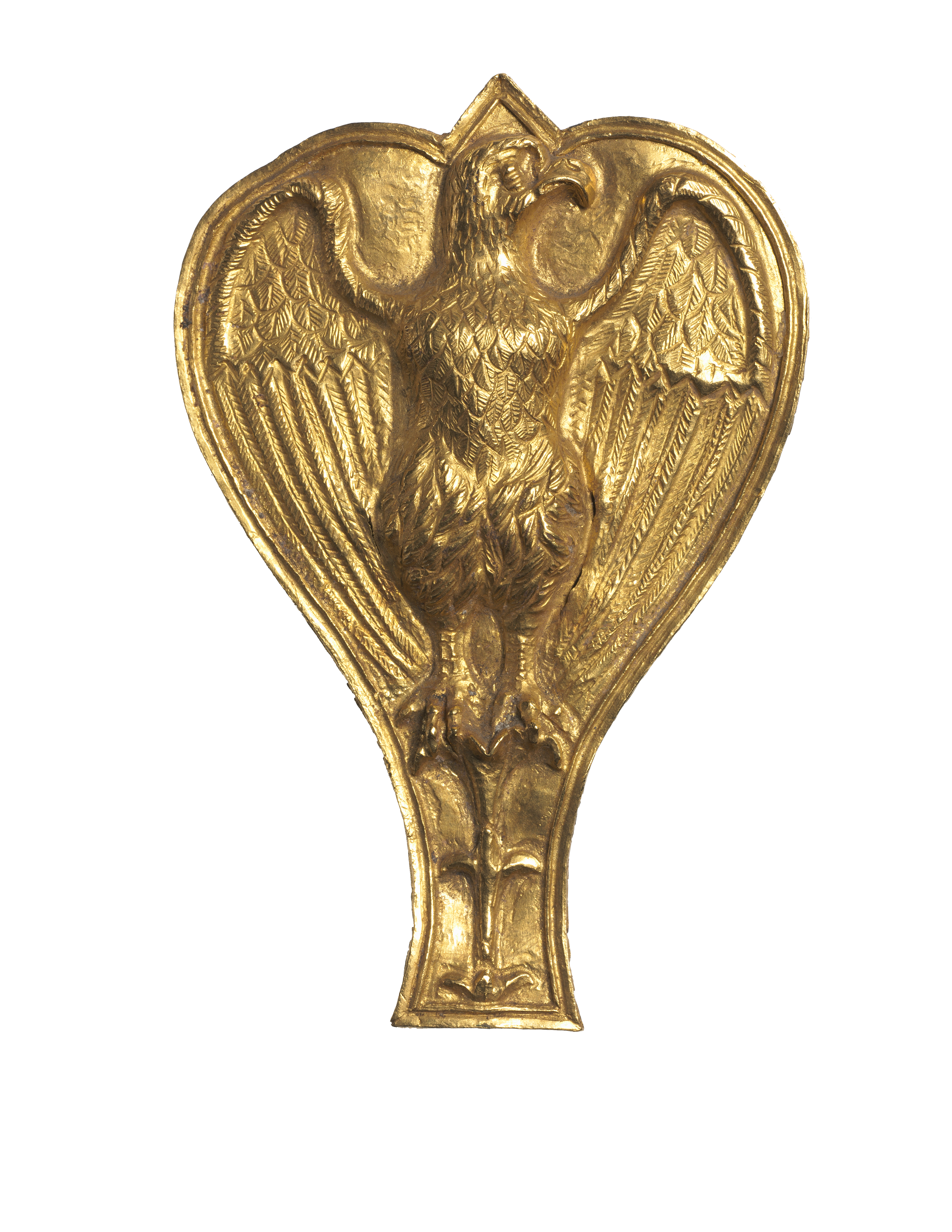 This decorative ornament is just over 3 inches in height. The eagle was the symbol of imperial power. Each legion had a large, gold eagle, aquila, which they carried into battle.