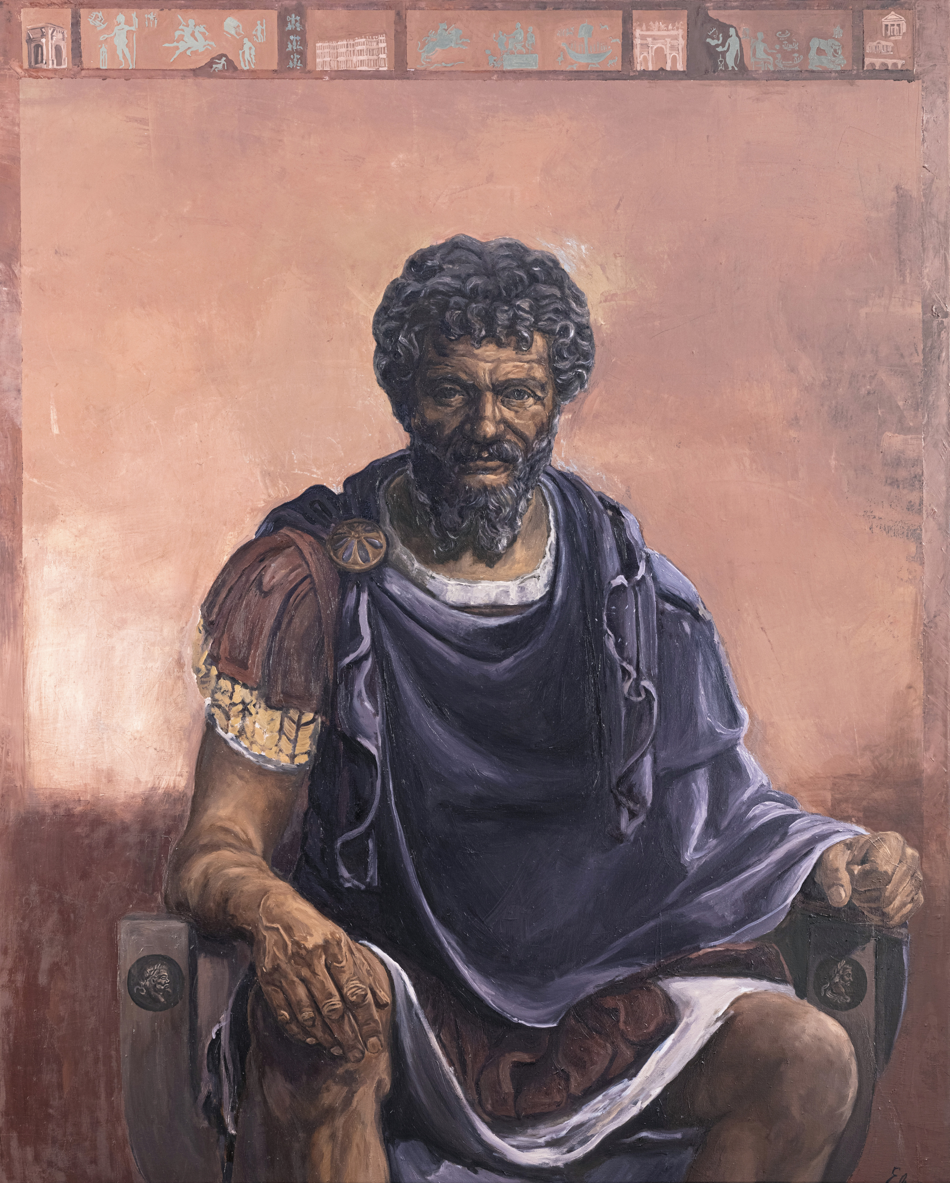 This portrait of Emperor Septimius Severus was painted in 2021 by Elena Onwochei-Garcia. It was commissioned by English Heritage as part of a series exploring African figures in England’s history.