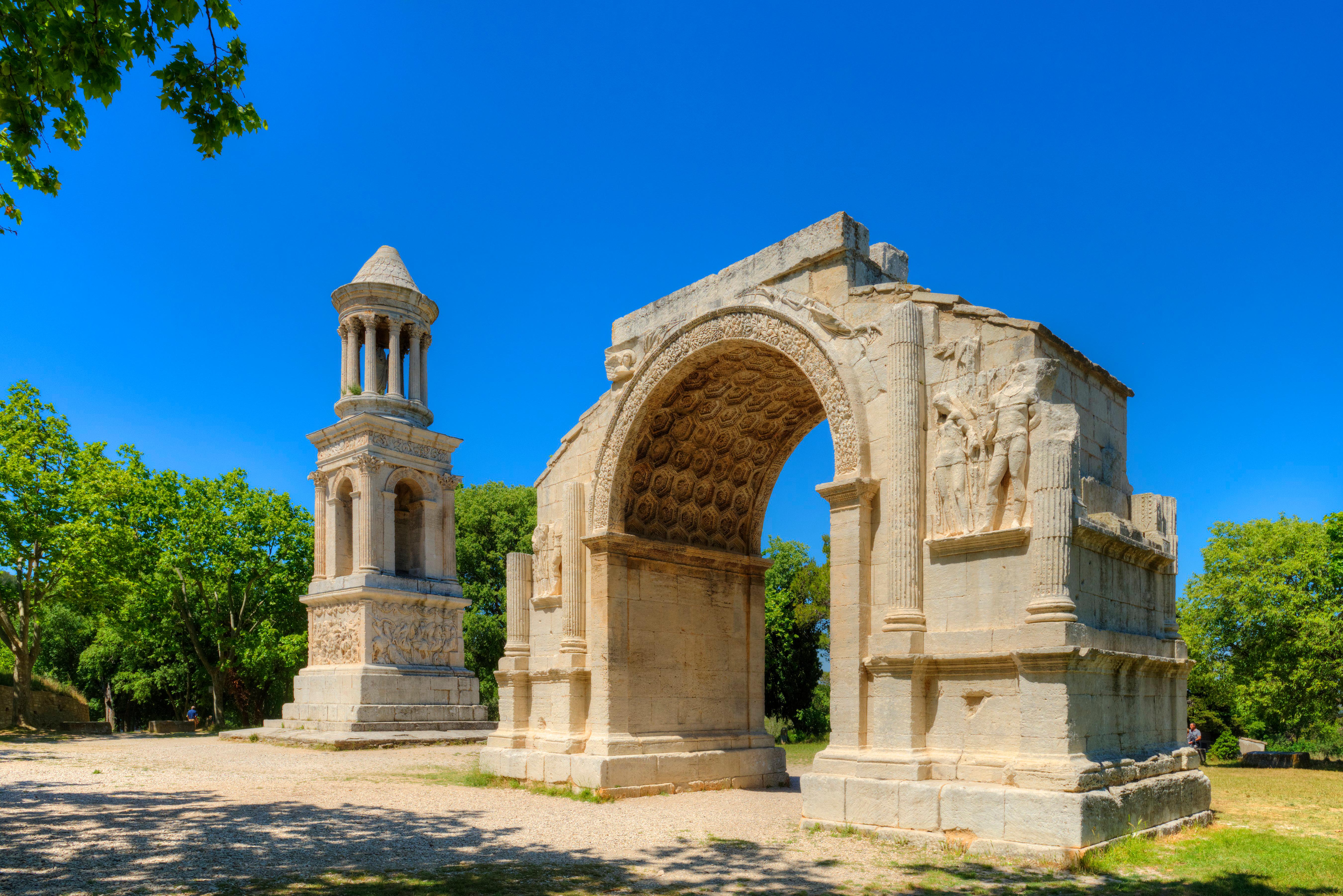 This triumphal arch is from Glanum, in southern France. It was built near the end of Augustus’ rule and is decorated with scenes of conquest. Behind it stands a well-preserved Roman mausoleum.