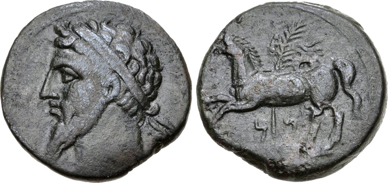 A coin with the head of a Numidian king, either Masinissa or Micipsa. On the obverse is a horse and a palm. The Numidians were famed for their horses and at times provided light cavalry units to the Roman army.