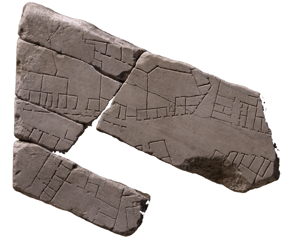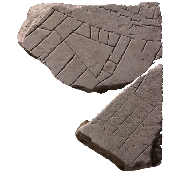 Fragments from the Fōrma Urbis Rōmae, the map of the city of Rome.